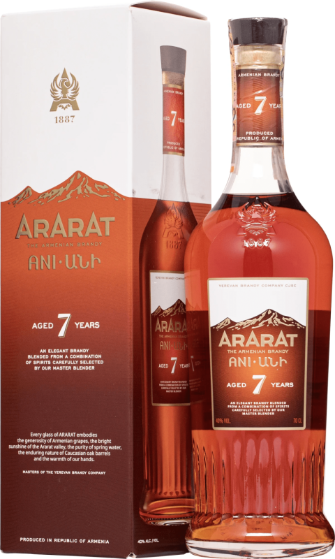 Ararat Ani stelesňuje eleganciu ženského mena Ani a vznešenosť starobylého mesta Ani, mocného symbolu arménskej civilizácie. Toto brandy je skutočnou poctou histórii a tradíciám Arménska s koreňmi, ktoré siahajú stáročia do vlasti arménskeho brandy. Na vytvorenie tejto 7-ročnej zmesi, ktorá ponúka kombináciu elegancie a sily, sa starostlivo vybrali destiláty brandy, ktoré zreli v dubových sudoch.
