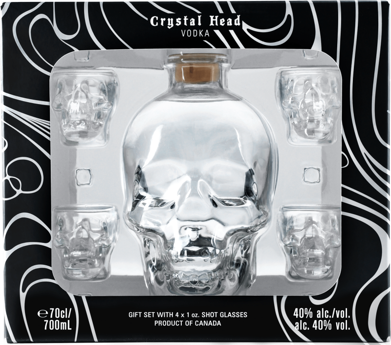 Skvelá vodka, na ktorej výrobe sa podieľal John Alexander a Dan Aykroyd! Je to pravda, toto je neoficiálna vodka filmu Krotitelia duchov. Táto úžasná vodka propagovaná známou osobnosťou sa destiluje a filtruje cez 500 miliónov rokov staré kryštály. Silu získava vďaka čistej newfoundlandskej vode a fľaškuje sa do ikonickej sklenenej lebky, ktorú vyrobil taliansky výrobca Bruni Glass ako symbol života, odrážajúci silu a osvietenie. Jednoducho to najlepšie, čo bude odrážať ducha Crystal Head vodky nesúcej nejedeno medzinárodné ocenenie.