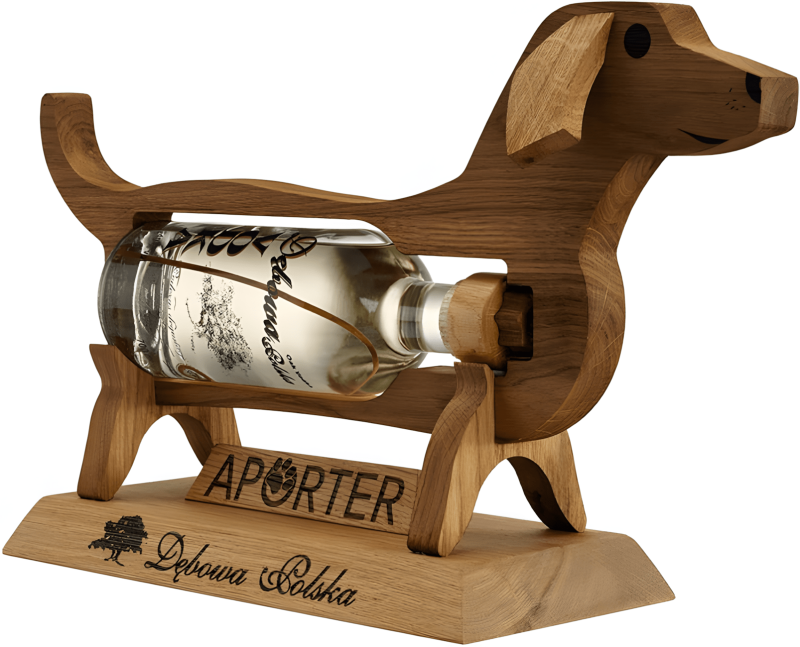 Debowa Oak Vodka Aporter 40% 0,7l - vďaka tomuto milému darčekovému baleniu od značky Dębowa, môžete dať svojim priateľom originálny darček! Fľaša sa nachádza v drevenom stojane v tvare psa.