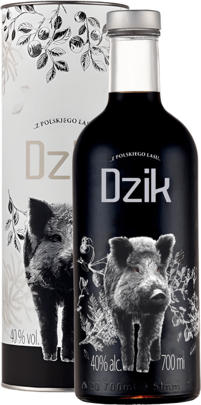 Debowa - Vodka Black DZIK 40% 0,7l je poľská ochutená vodka s tmavohnedou až takmer čiernou farbou, ktorá je známa svojím jemným tónom kávy, karamelu a mandlí.
