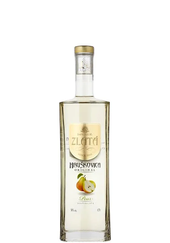 Imperátor Hruškovica Zlatá 50% 0,7l - znamenitý slovenský destilát vyrobený z prvotriednych hrušiek odrody Williams, ktorým vďačí za prijemnú vôňu a delikátnu sladko-ostrú chuť. Počas destilácie je neustále pod dozorom odborníkov! Následne sa naplní do fliaš s 50 % obsahom alkoholu.