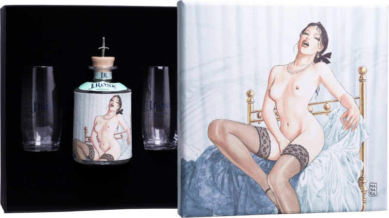 Etiketu je možné z fľaše odlepiť a použiť ako nálepku kdekoľvek si želáte. Dýka z nehrdzavejúcej ocele vsadená do uzáveru je určená na opakované použitie ako prívesok, náušnica alebo piercing. O vzrušujúcejší zážitok sa postará aj darčekový box: elegantná škatuľa, v ktorej sa nachádza J.Rose a dva poháre. Vrchnák boxu sa stáva autentickou maľbou/obrazom od Mila Manara.