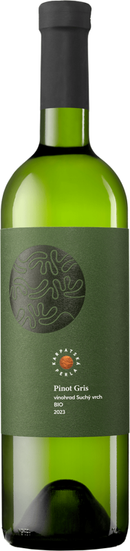 Slovenské víno s chráneným označením pôvodu, cukornatosť hrozna pri zbere 21,5°NM, biele, suché. Pochádza z vinárstva Karpatská Perla. Odroda Pinot Gris (Rulandské šedé), ročník 2023, Malokarpatská vinohradnícka oblasť, Sv. Martin, vinohrad Suchý vrch.