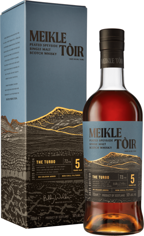 The Turbo 2025 Edition je túto víziu dotiahnutou do extrému: destilát bol vybraný zo „srdca“ destilácie s najvyšším obsahom fenolov (~72 ppm).