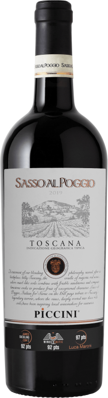 Piccini Sasso Al Poggio Rosso Toscana IGT je talianske červené víno vyrobené zo výberu najlepších strapcov hrozna pozostávajúceho zo 60 % z odrody Sangiovese, 20 % Cabernet a 20 % Merlotu, vinohradnícka oblasť Toskánsko IGT, Taliansko. Ide o jedno z tzv. “supertoskánskych” vín pomenovaných po jeho mieste zrodu a kolíske väčšiny červených vín – po hornatom Toskánsku s ílovitou a skalnatou pôdou. Odkazuje na to aj názov vína “Sasso al Poggio,” ktorý v preklade znamená kameň na kopci. Víno po vinifikáciu zrelo celkovo 12 mesiacov v dubových sudoch a 4 mesiace vo fľaši.