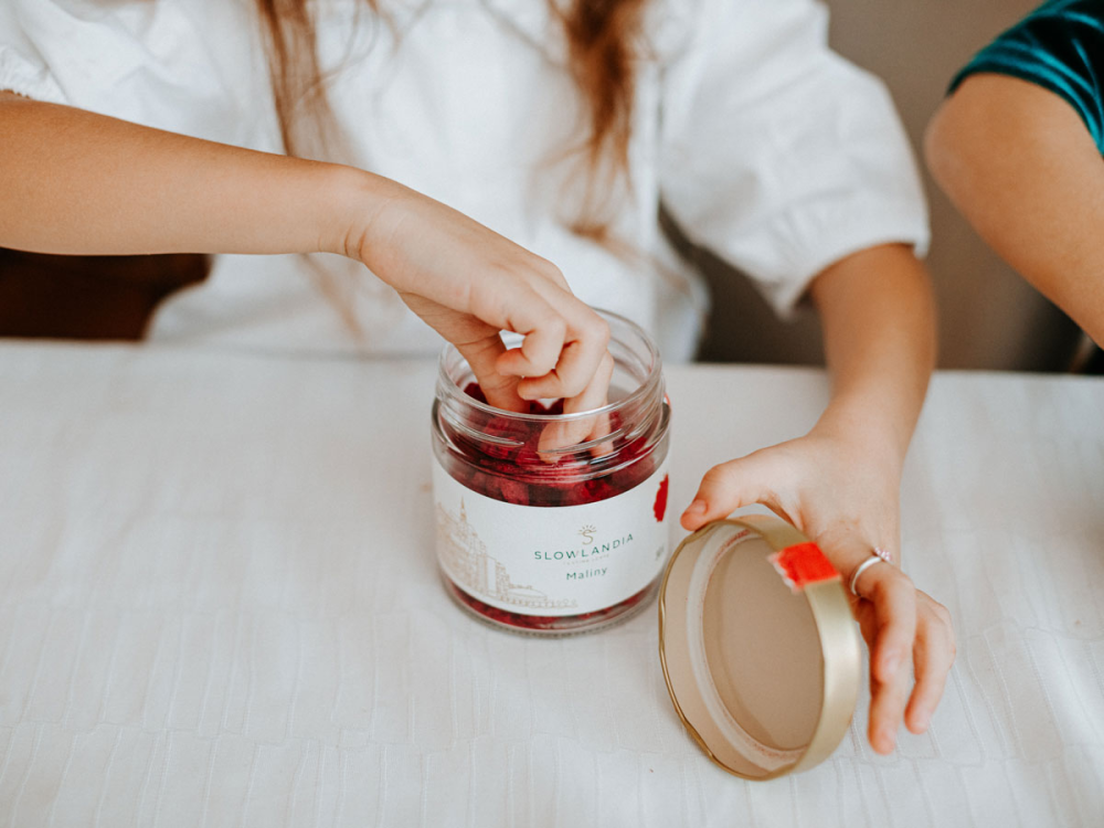 SLOWLANDIA – Maliny chrumkavé 30 g - chrumkavé lyofilizované (mrazom sušené) maliny v sklenenom pohári, vákuované pre udržanie absolútnej čerstvosti. Ideálne pre tých, ktorí si chcú dopriať niečo sladké a zároveň dbajú na svoj zdravý životný štýl.