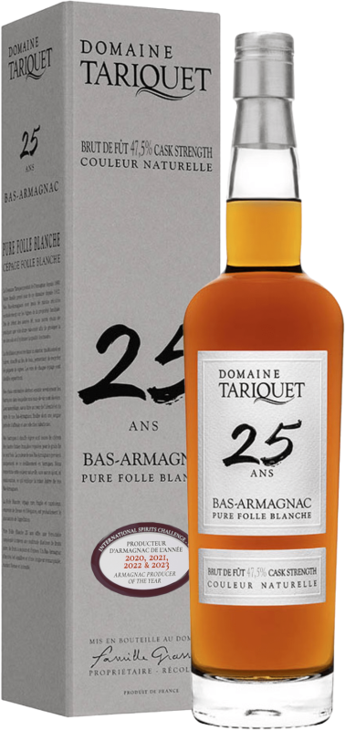 Vinárstvo Domaine Tariquet sa nachádza v Gascony v juhozápadnom Francúzsku a je vo vlastníctve rodiny Grassa už od roku 1912. 25 rokov starnutia v dubových sudoch mu dodalo výbornú jemnosť a intenzitu. Ide o najstarší Bas-Armagnac z radu Pure Folle Blanche od Tariquet!
